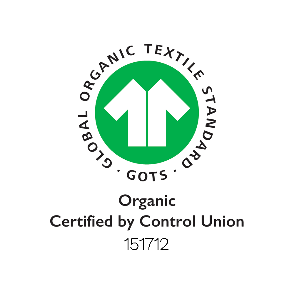 Das GOTS-Zertifikat ist eine Zertifizierung für die ökologische Textilproduktion in mehr als 70 Ländern weltweit. Es gewährleistet den ökologischen Standard unserer Stoffe und wird regelmäßig von der unabhängigen Kontrollstelle Control Union überprüft.